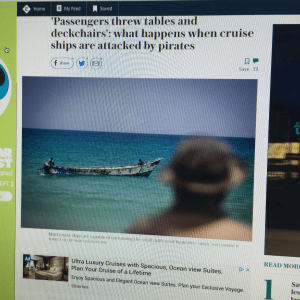 A photo of the online Telegraph article from August 2017 (yes LAST YEAR) talking about how cruise ship passengers can deal with pirates.