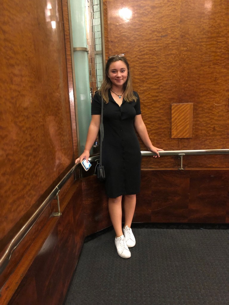 Hayley taking advantage of the original panelling and fixtures for, you know, a “great Instagram shot”. The Queen Mary. Photo courtesy of Kris Core.