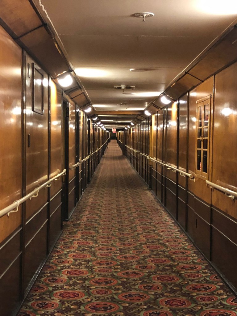 The long, long walk down the stateroom hallway. Not creepy at all. The Queen Mary. Photo courtesy of Kris Core.