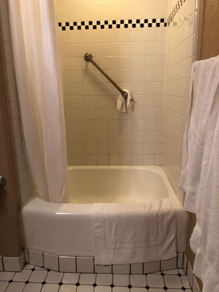 Our cool little bathroom and the smallest bathtub we’ve ever seen. Room A171, The Queen Mary. Photo courtesy of Kris Core.